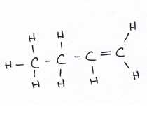 For the GCSE, you need to be able to recognise some families of organic chemicals and be able to name a few of their members. Whilst you were studying the chemistry of crude oil, you came across two families of hydrocarbons (chemicals containing only hydrogen and carbon), the alkenes and the alkanes. Alkanes are saturated, that is to say, there are no double bonds between any of the carbon atoms. Alkenes are unsaturated so they have at least one double bond between a pair of carbon atoms.
