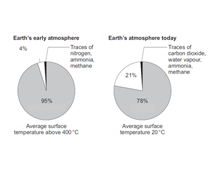 The atmosphere too has layers. There is a layer that protects us from harmful ultra violet radiation (the ozone layer), a layer that reflects radiowaves which is useful as it means that communication is possible over long distances, a layer that contains most of the air (the troposphere) and some others too. There is a small amount of carbon dioxide spread through the entire atmosphere. As well as enabling photosynthesis, it provides a greenhouse effect. If it weren't for this, the Earth would be frozen solid, however, at current levels of carbon dioxide, the average temperature is just under 15°C. That allows liquid water to exist on the surface of the Earth, and without liquid water, life on Earth would not be possible.