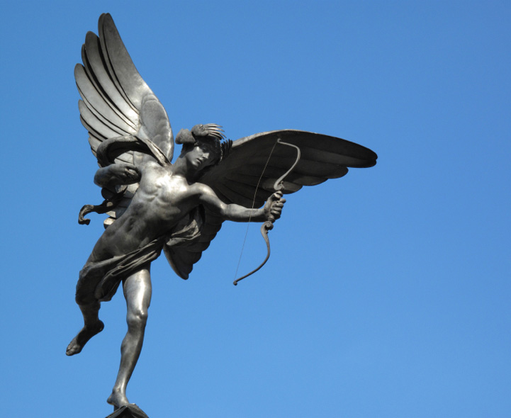 A statue of a winged archer stands in Piccadilly Square in London. What is his name?