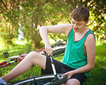 Connor is blowing up a bicycle tyre. What is he pumping into the tyre?