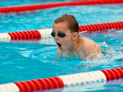 Child swimming in race