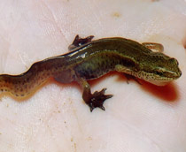 The typical amphibian life cycle starts in the water with eggs that then hatch into larvae - tadpoles, in the case of frogs - which metamorphose into adult form. The adults can live relatively independently of water for extended periods of time, and in some cases, like the spadefoot toads of the southwestern United States, they can remain underground nearly an entire year without water. But even the spadefoots need to return to water to breed and complete the life cycle.