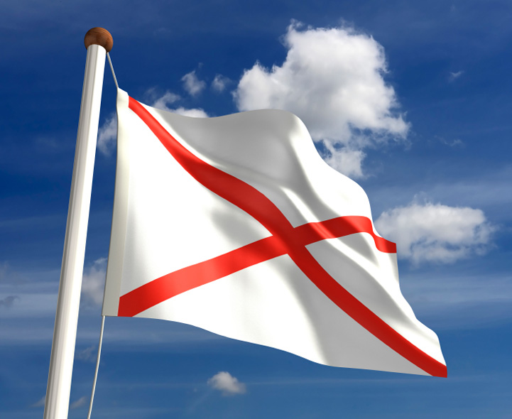 The current flag was adopted in 1895. The cross of Saint Andrew is reminiscent of the cross on the Confederate flag. It might also be inspired by the Spanish flag of Burgundy (which had been used in Alabama before the 19th century) or the flag of Scotland, as at one time one third of inhabitants of the South Eastern part of the USA were descended from Scottish ancestors