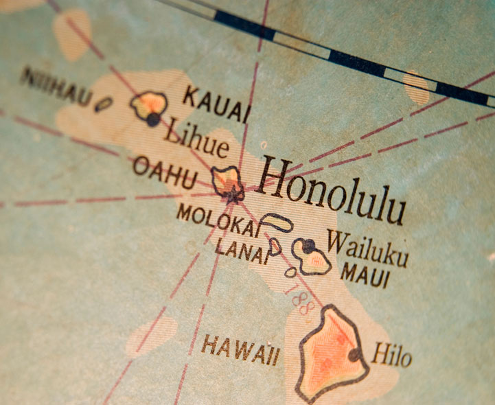 Hawaii is unique amongst the United States in many ways. It is the only state not in North America, the only state wholly surrounded by water, the only state with royal palaces and the only state whose borders contain no straight lines.