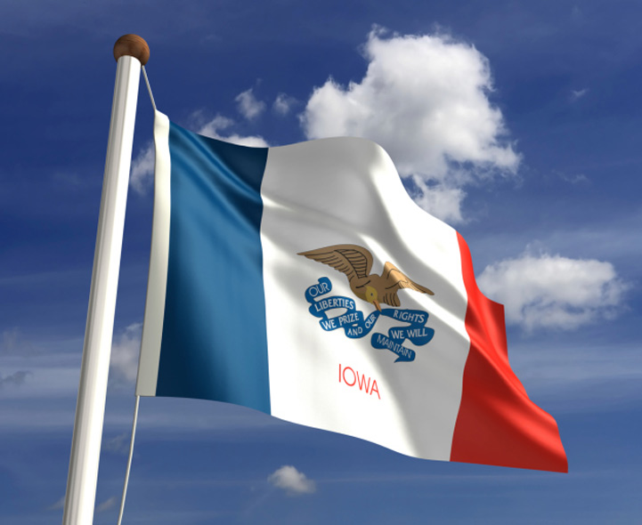 The similarity to the French flag may be a reference to Iowa's history as a part of the French Territory of Louisiana. The state motto borne by the bald eagle reads: "Our liberties we prize and our rights we will maintain"