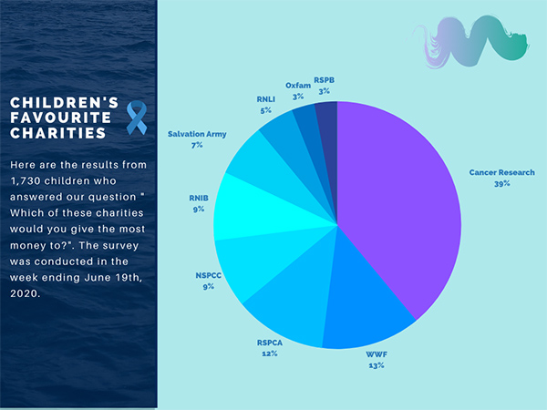 Here are the results from 1,730 children who answered our question " Which of these charities would you give the most money to?". The survey was conducted in the week ending June 19th, 2020.