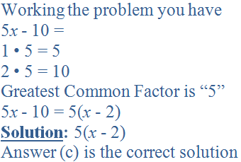 This Math quiz is called 'Algebra Intermediate - Factoring Polynomials [Step 1: Greatest Common Factor]' and it has been written by teachers to help you if you are studying the subject at middle school. Playing educational quizzes is a fabulous way to learn if you are in the 6th, 7th or 8th grade - aged 11 to 14.