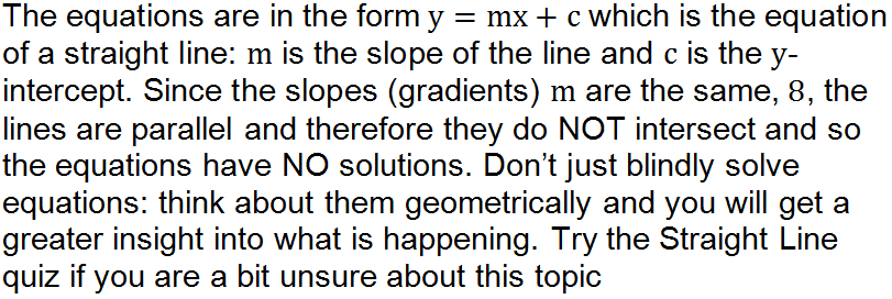 This Math quiz is called 'Simultaneous Equations 1' and it has been written by teachers to help you if you are studying the subject at middle school. Playing educational quizzes is a fabulous way to learn if you are in the 6th, 7th or 8th grade - aged 11 to 14.